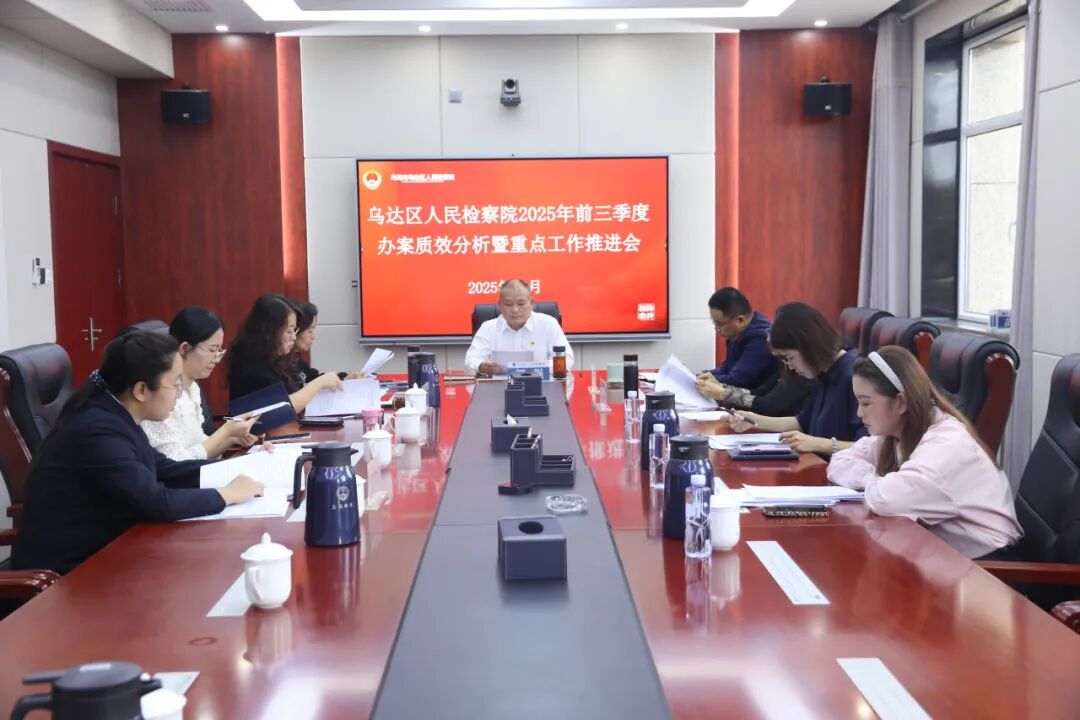 10月16日,乌达区人民检察院组织召开2025年前三季度办案质效分析暨重点工作推进会,全面总结前三季度工作成效,研究部署第四季度重点工作。院党组书记、检察长郭强主持会议并讲话,班子成员、各部门正副职参加会议。